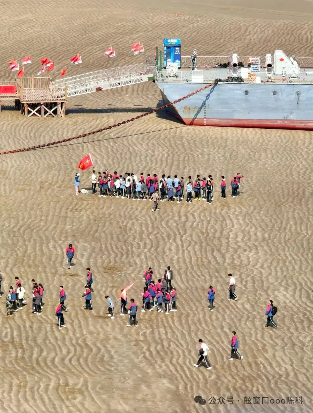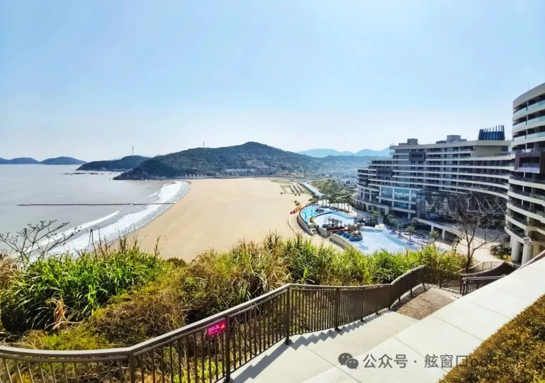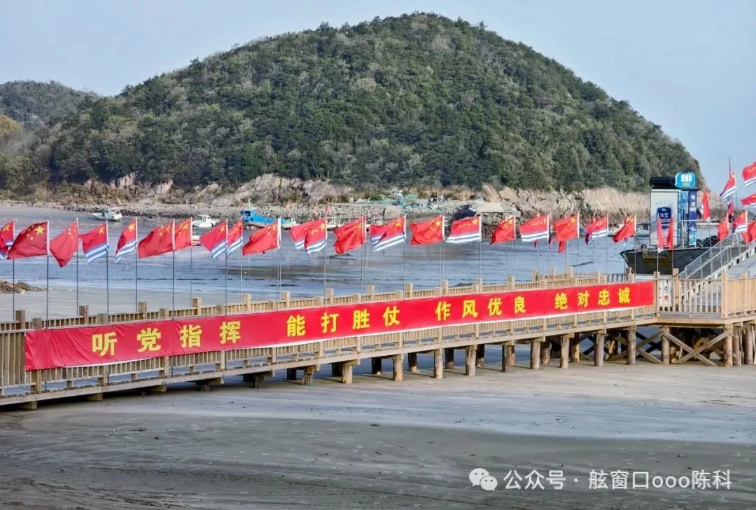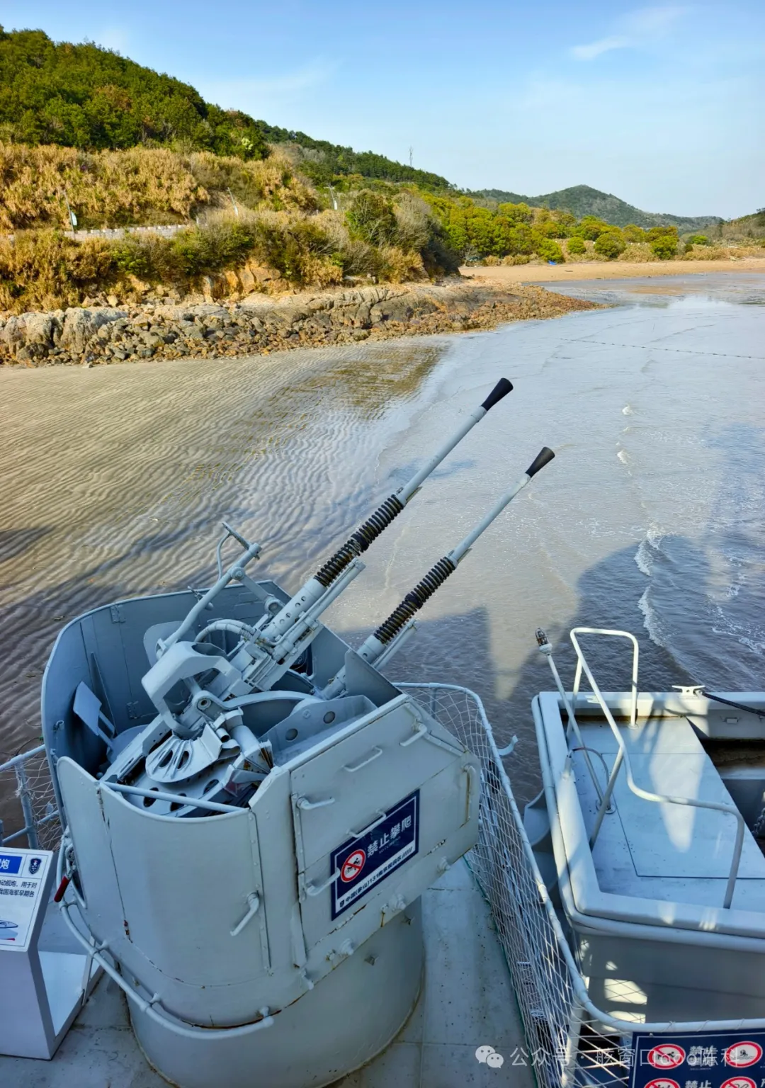 近處是寧波工人療養院海灘,退潮時,可以從海灘直接去131南京艦那邊。漲潮海灘淹沒,可從海邊的一個短隧道過去,步行開車都可以