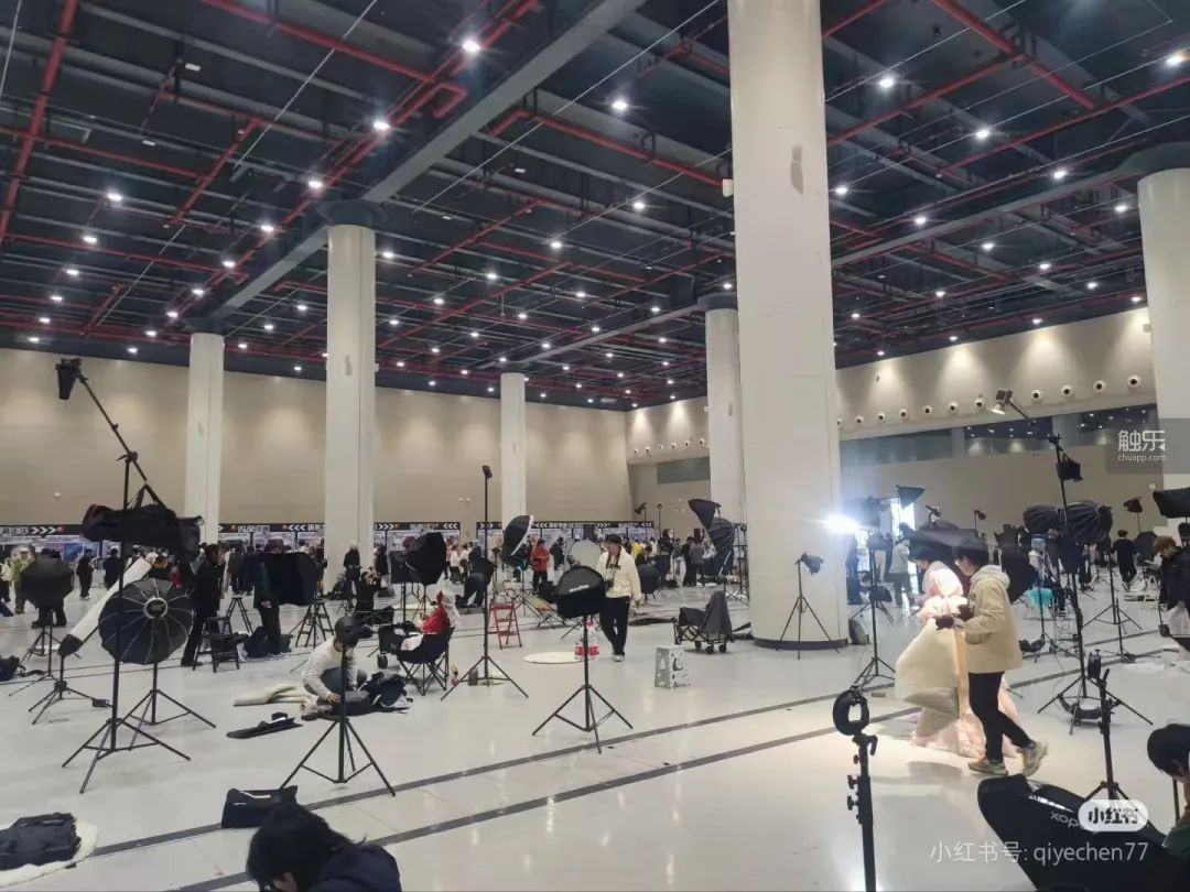 武漢一次漫展場地裏支起大量攝影燈架,會佔據更多場地空間(圖源:小紅書用户@qiyechen77)
