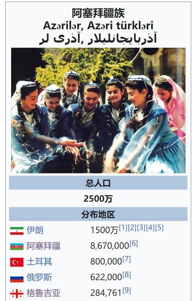 阿塞拜疆雖然是一個以阿塞拜疆族為主的國家。但絕對人口太少,大部分阿塞拜疆族依然生活在南方的國家伊朗。