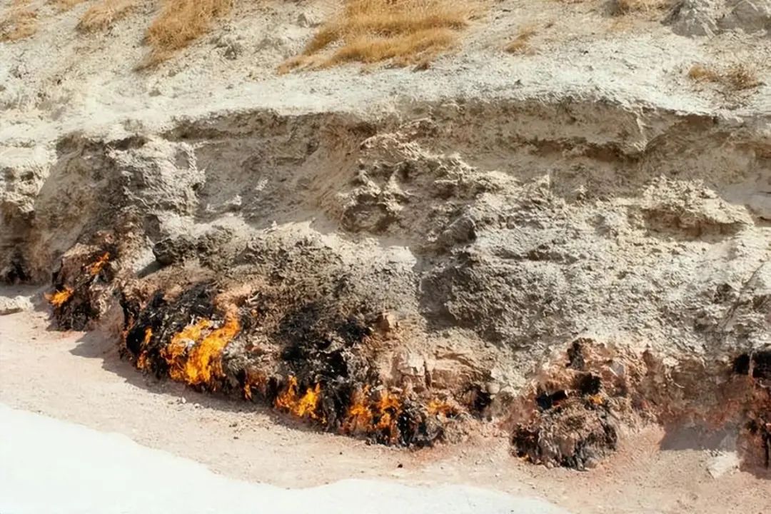 伊朗高原北部靠近裏海和高加索地區,因自然原因外泄的天然氣遇火燃燒,經常出現類似於火焰山一般的火焰。
