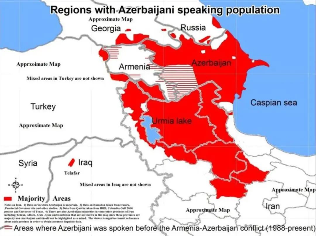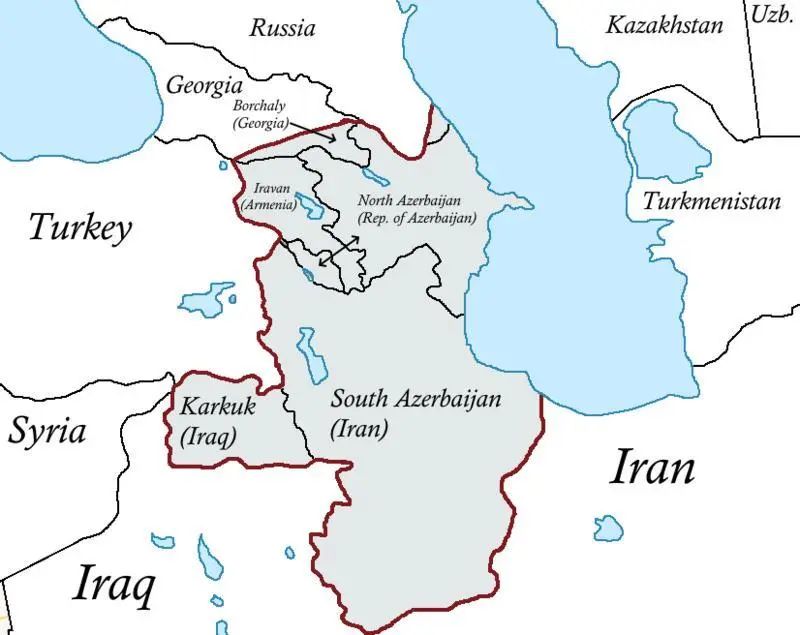 大阿塞拜疆主義者心中的版圖包括了阿塞拜疆全境,還包括亞美尼亞、伊朗的阿塞拜疆地區。