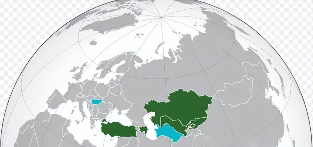 ▲突厥語系(綠色)國家分佈:包括藍色右下角的土庫曼斯坦