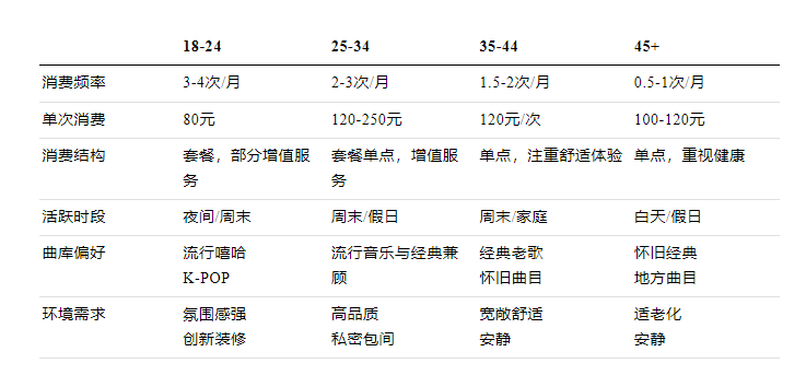 45歲以上中老年羣體雖消費頻率較低,但忠誠度高,偏好懷舊曲目和安全舒適的環境,成為線下KTV的重要增長動力。