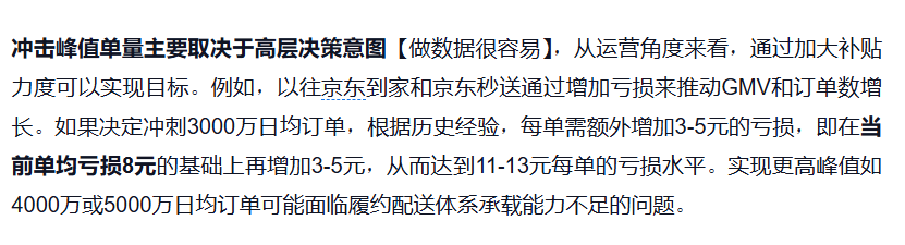 京東:據調研披露日單量約為1800-2000萬單,在補貼高峯期間,日單峯值能夠觸達2500萬單。