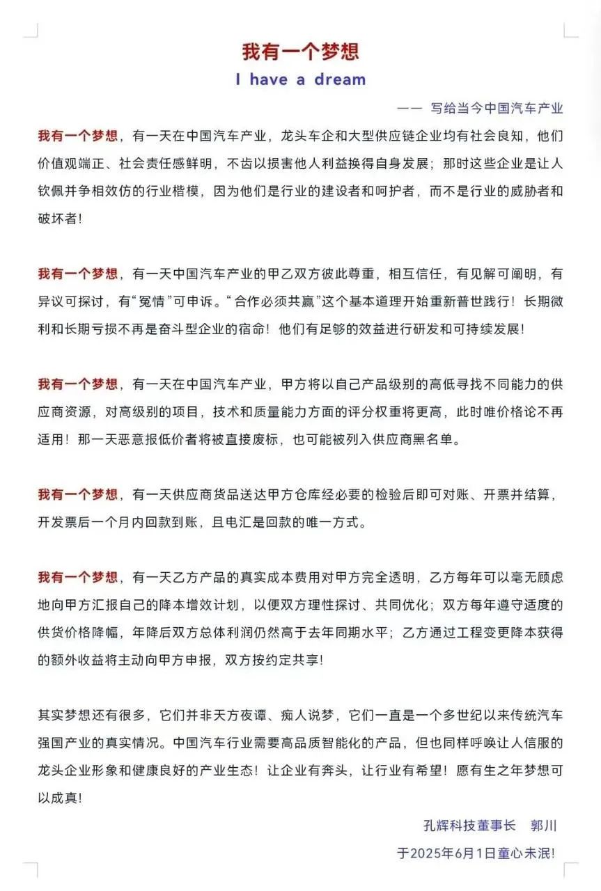剛過去的 6.1 兒童節,孔輝科技董事長郭川發表了文章《我有一個夢想》,其中提到了共贏、質量、賬期、降本等多個甲乙方核心矛盾。