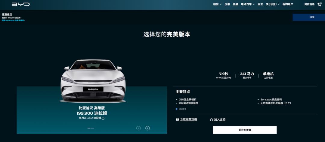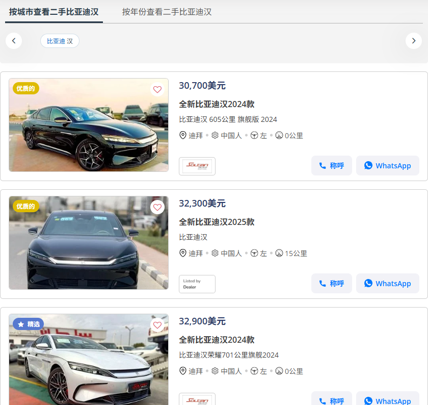 就比如這台阿聯酋的比亞迪漢,官方賣 199900 阿聯酋迪拉姆(摺合人民幣 39.2 萬),而當地的 0 公里二手車則是 3 萬多美元(摺合人民幣 22 萬左右)。