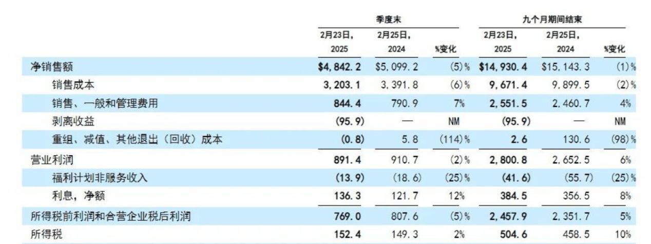 從通用磨坊近期財報的表現來看,其業務承壓明顯。財報顯示,通用磨坊2025財年第三季度淨銷售額達48億美元(約合人民幣348億元),同比下降5%;淨利潤為6.26億美元(約合人民幣45.38億元),同比下降7%,未達投資者營收目標預期。