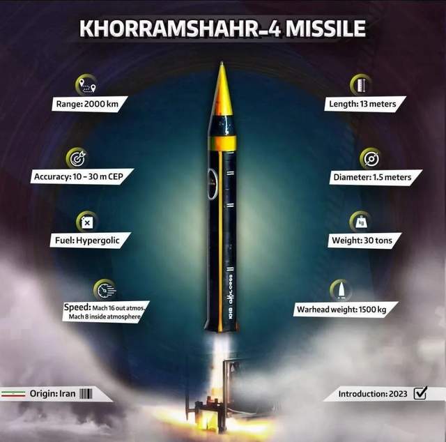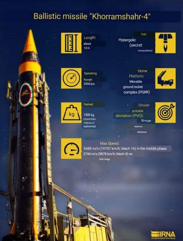 根據此前伊朗方面公佈的數據,“泥石”的正式名稱叫做“霍拉姆沙赫爾-4”(Khorramshahr-4)型中程彈道導彈(也稱“海巴爾”、“薩吉爾”),該導彈可攜帶1500公斤的彈頭打擊2000公里外的目標,使用自燃液體燃料,可實現12分鐘快速發射準備。
