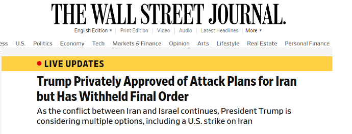 1. 伊朗現在非常慘,高級軍事領導人全部被殺,制空權沒有了被以色列隨便炸。週二消息,特朗普已經批准了美軍對伊朗作戰計劃,但動不動手要他來偷機式決定。特朗普正在大搞“極限施壓“,試圖讓伊朗人崩潰。但應該就是加強版以色列,還是空中炸,不可能有地面部隊。
