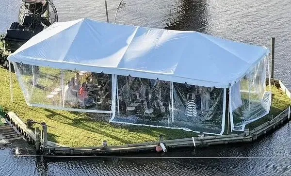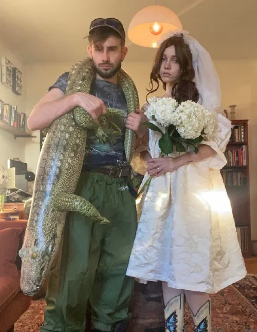 更突破想象力的是,打雷姐和鱷魚佬僅僅談了一個月戀愛就在他家門口的大棚裏火速閃婚擺席,她穿着從二手店淘來的400元婚紗幸福嫁人,誰看了不誇一句,好會省錢一女的。
