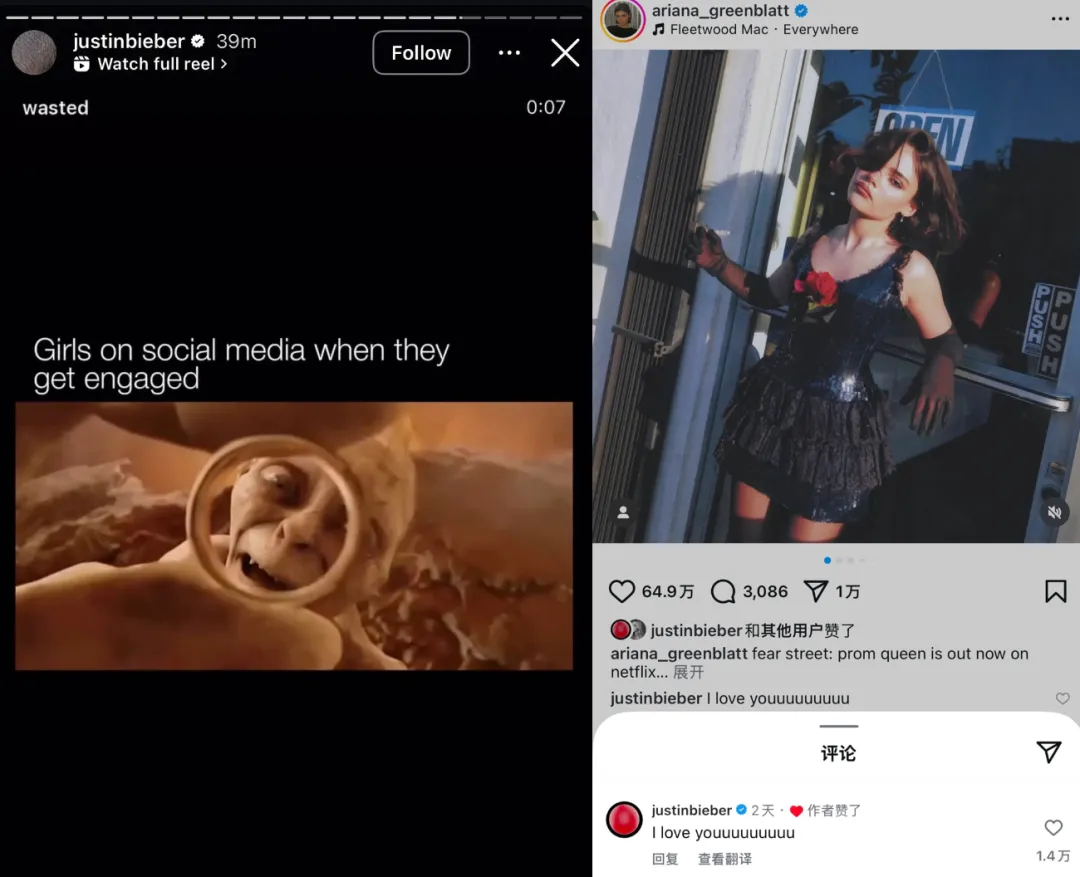 NoNoNo,實際上今年比伯已經聊發兩次少年瘋了,4月用咕嚕陰陽怪氣女生訂婚曬戒指的行為,5月又點贊神似賽琳娜的網紅並激情告白“我愛你”,劇情陡然拐進莞莞類卿環節,誰也不知道接下來輪到誰發瘋。