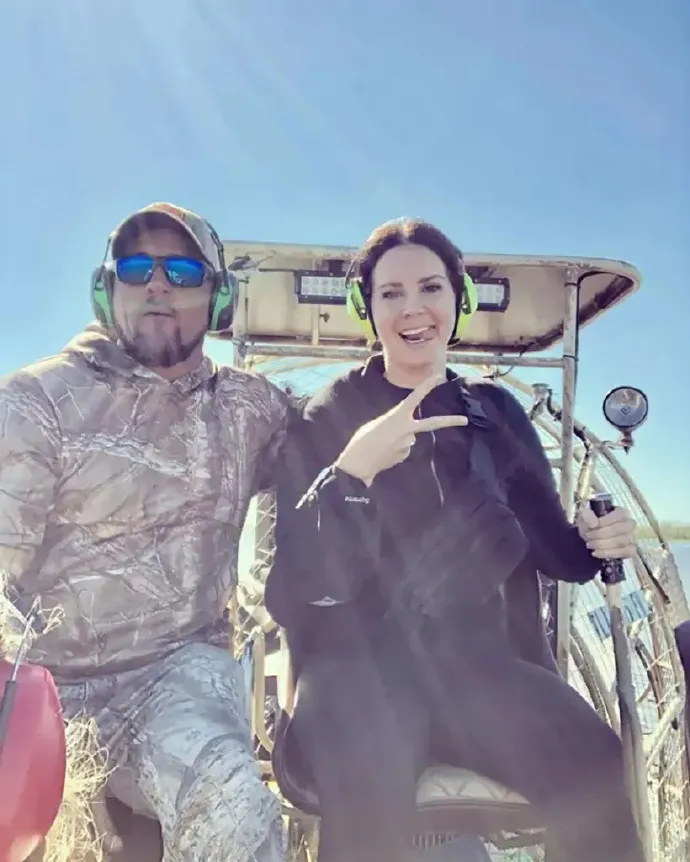 而右邊那位,是她的老公傑瑞米·杜弗倫,一個和娛樂圈半點關係不沾的圈外素人,平常主要工作,是開着敞篷氣墊船帶遊客到沼澤地去……看!鱷!魚!
