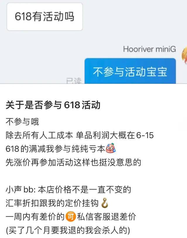 還有商家表示,很多消費者問,今年618有沒有活動**,我們不想搞先漲價後降價那一套**,很抱歉地告訴大家,沒辦法參加618.