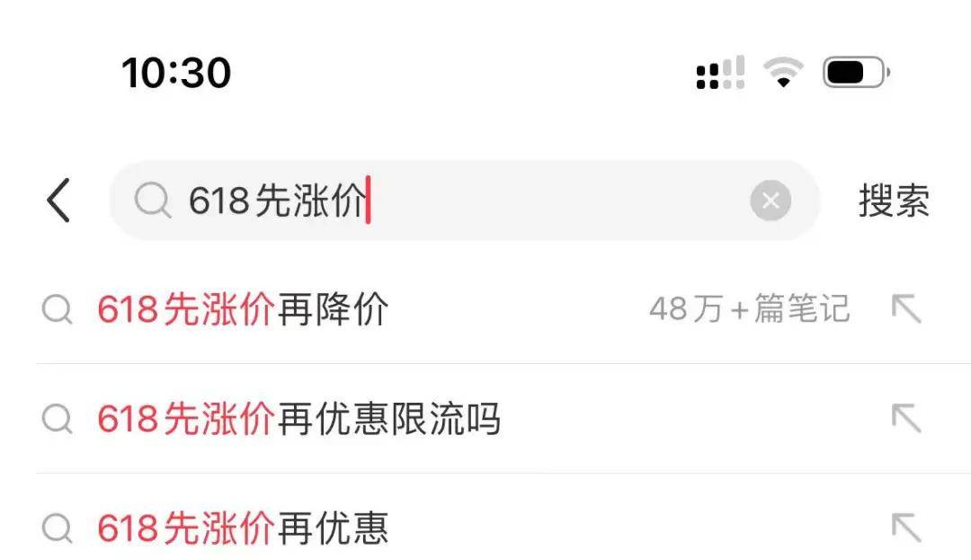 比如在小某書上,關於618先漲價再降價的筆記竟然高達近五十萬條。