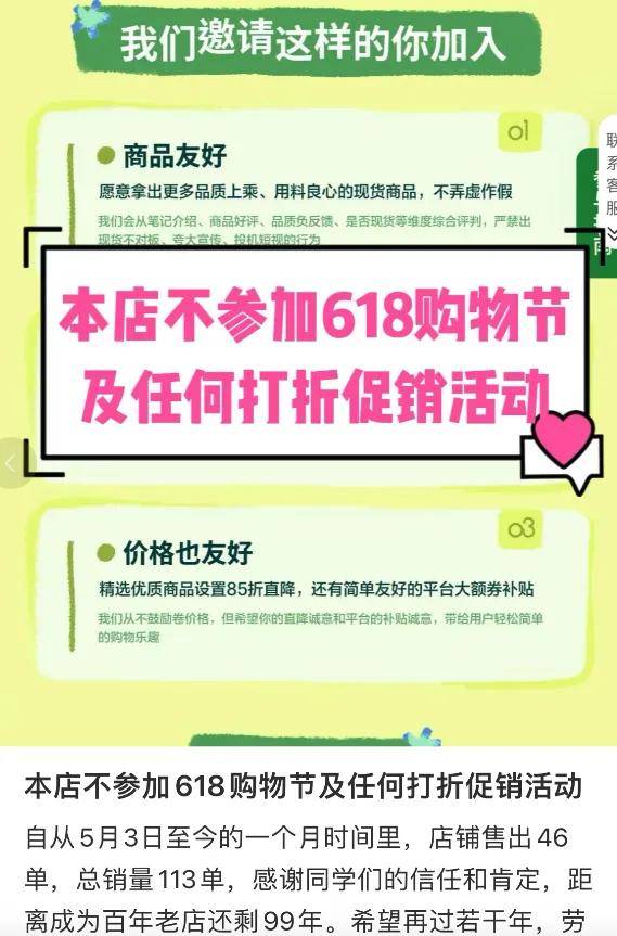 比如有商家表示,今年的618活動513就開始了,越來越離譜,在此本店承諾,全年不參加任何活動。