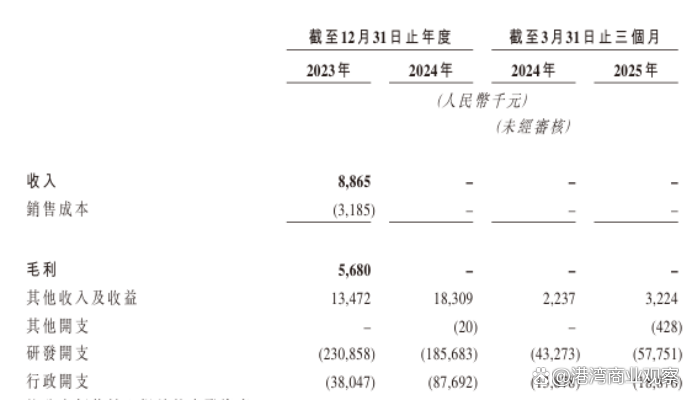 維立志博僅在2023年實現收入886.5萬。2023年-2024年及2025年前三個月(報告期內),公司淨虧損分別為3.62億元、3.01億元和7536.7萬元,經調整淨虧損分別為2.27億元、2.03億元和6652.2萬元。