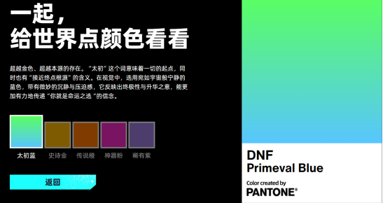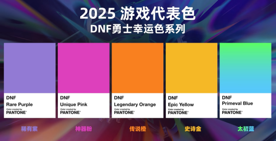 DNF與色彩研究機構 Pantone 聯合推出“深淵五色”專屬色卡,Pantone更是將其定義為“2025年遊戲代表色”。
