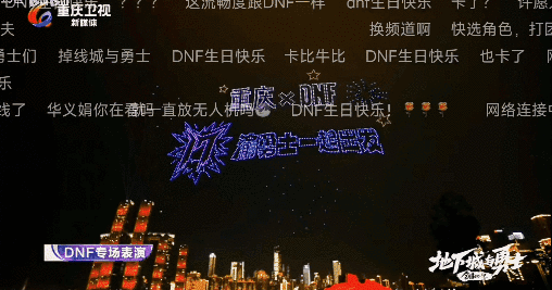 重慶衞視還專門播出了這場空中盛典,DNF玩家的彈幕刷屏、社羣狂歡再次説明了一件事: