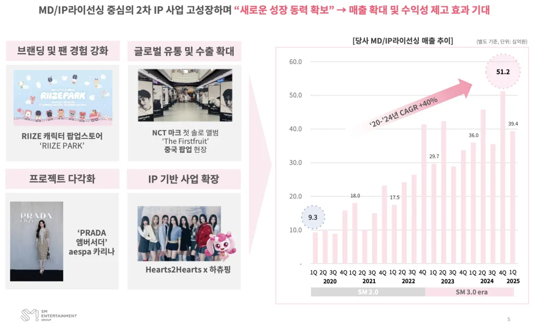 韓娛公司MG在財報中指出:以MD/IP 授權為核心的IP二次開發業務,是“新的增長動力”。以此“有望擴大銷售額並提升營收能力,強化品牌與粉絲體驗,擴大全球流通與出口”。