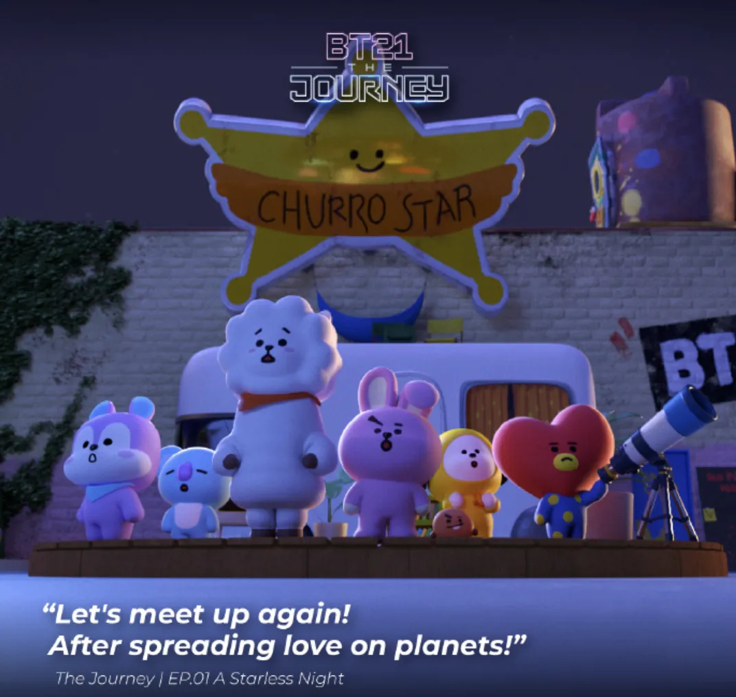 該項目的合作方IPX(前身為LINE FRIENDS)規劃了BT21的內容開發和運營體系。包括動畫“BT21 UNIVERSE”、為BT21舉辦LIVE SHOW、發佈新歌和MV。BT21像藝人團體一樣接品牌廣告、上直播,在虛擬角色IP的道路上開闢天地。