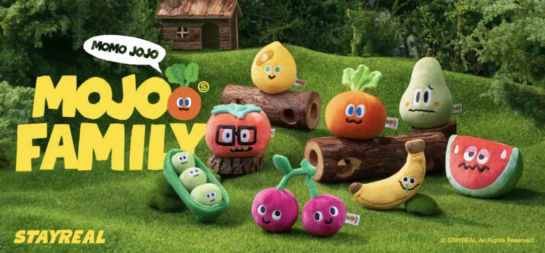 “卜卜”走了一條差異化道路:衍生IP與明星真人互為反哺,滲透在整個藝人經濟模型中。演唱會開到哪裏,胡蘿蔔就打到哪裏。「STAYREAL PARK純真公園」的全國漫遊,卜卜IP成了主打視覺符號,還衍生出一套“蔬菜水果全家福” MOJO FAMILY。