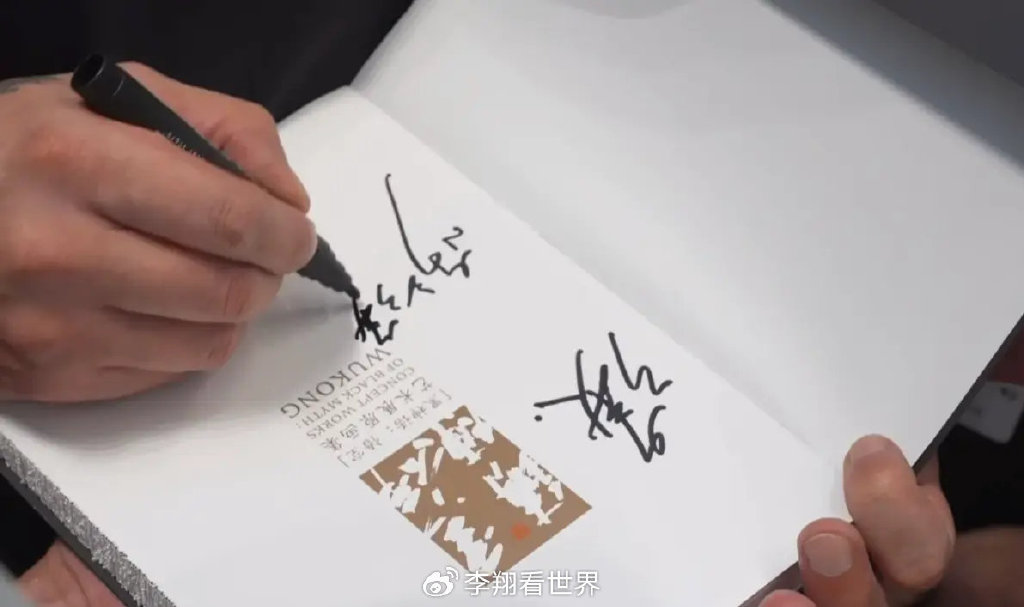 (圖説:館長在黑神話悟空的圖集上寫下“漢”字)