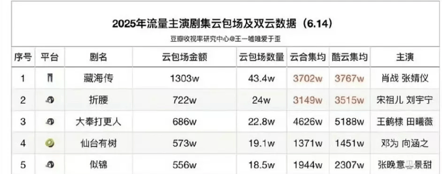 業內人士向「市象」透露,雖然今年長劇行業整體無法與往年相比,但《藏海傳》沒跑過去年同平台的《墨雨雲間》,依舊為行業內敲響了警鐘。在今年各平台爆劇數據全部大縮水的情況下,“劇王”之名彷彿成了寒冬之下的安慰劑。