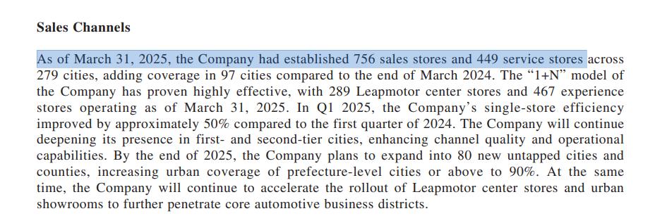 為了提高銷售費用效益,零跑採用的是“1+N”銷售模式,也就是少數直營加上多數代理,來幫助自己在快速擴張的同時減少資產投入,從效果來看,截至2025年一季度零跑有756銷售門店和449家服務門店,其營銷費用佔營收比例只有6%。相較之下,同樣是直營+經銷商的小鵬,一季度門店總數是690家,營銷費用佔營收的12%;採用直營為主的理想,營銷費用佔比則為10%。總體來説零跑的營銷費用控制是得當的。