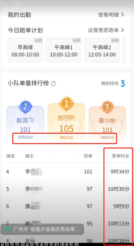 全職每天至少掛單8小時、在線10小時。以廣州為例,全職小隊背單時間都超過9小時了,10.5小時大有人在,算上吃飯和休息時間,一天在外至少13、14小時。