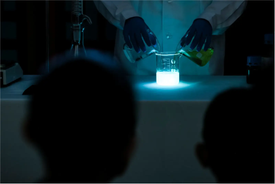 與人聊起化學,他習慣先講一遍“行話”,再做一遍“翻譯”,比如當他提到用魯米諾溶液做實驗時,會加一句“就是犯罪片裏法醫用的那種可以讓兇案現場血液顯影的東西。”