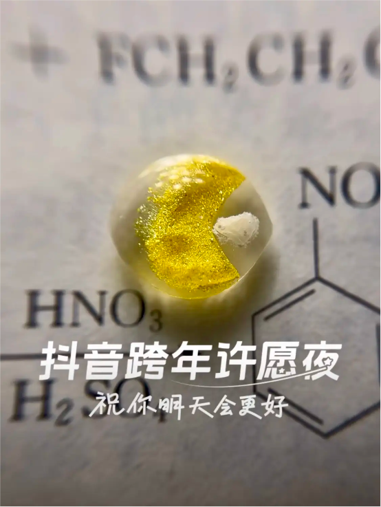最讓難晴雨感覺浪漫的是跨年夜時,他在一滴水中再次構建由醋酸鉛和碘化鉀反應而成的微觀宇宙,他為這個散佈金色星辰的世界取名為“星願”,而那一晚,來自全國各地的網友在他的評論區許願,為家人祈福。