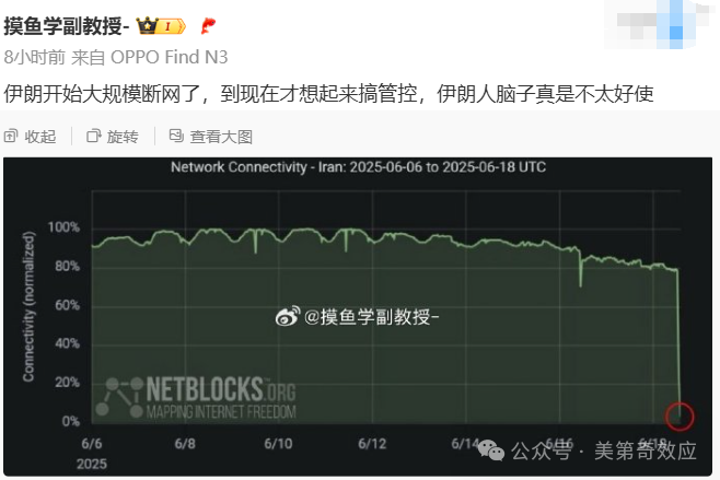 不過也不用單方面嘲諷以色列當鴕鳥,伊朗那邊直接斷了網,把網上不曝就是沒有執行到極致,以色列那邊跟烏克蘭學藉口,伊朗跟東方大國學手段,大家都有美好的前途。