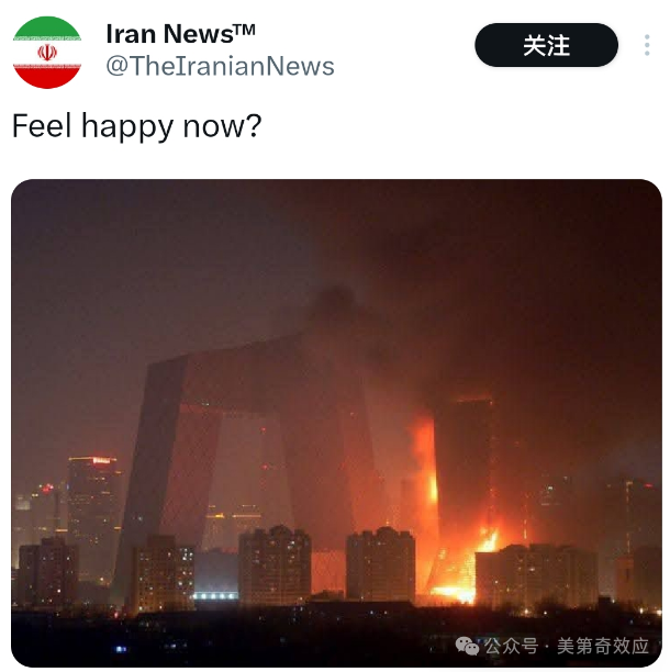 一怒之下,一怒了之。伊朗這個大新聞,看起來實在有點小。倒是央視大樓有點飛來橫禍:你們閃族人自己打自己,跟我十多年前的火災有何關係……