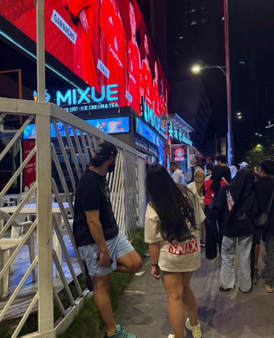 吉隆坡的雙子塔腳下,蜜雪冰城排着長長的隊。