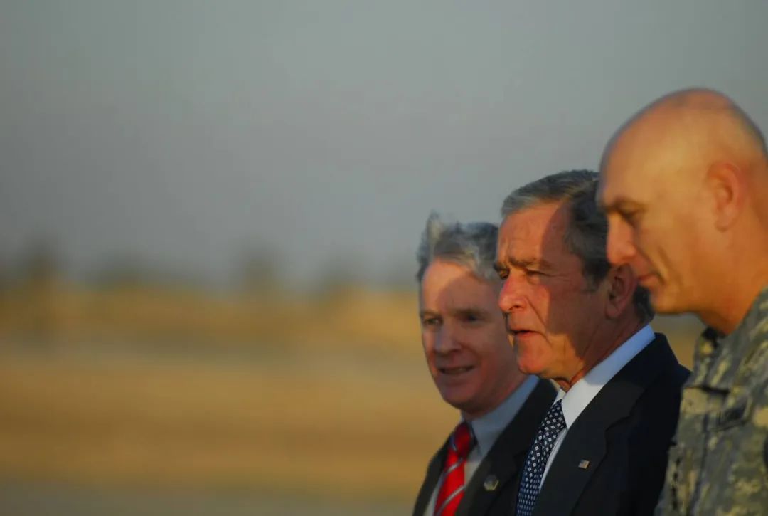 內部圍繞開戰情報也存在分歧。新保守主義者極力推動推翻伊拉克長期獨裁者薩達姆·侯賽因的機會。美國屏息等待時任總統小布什宣佈最後決定。