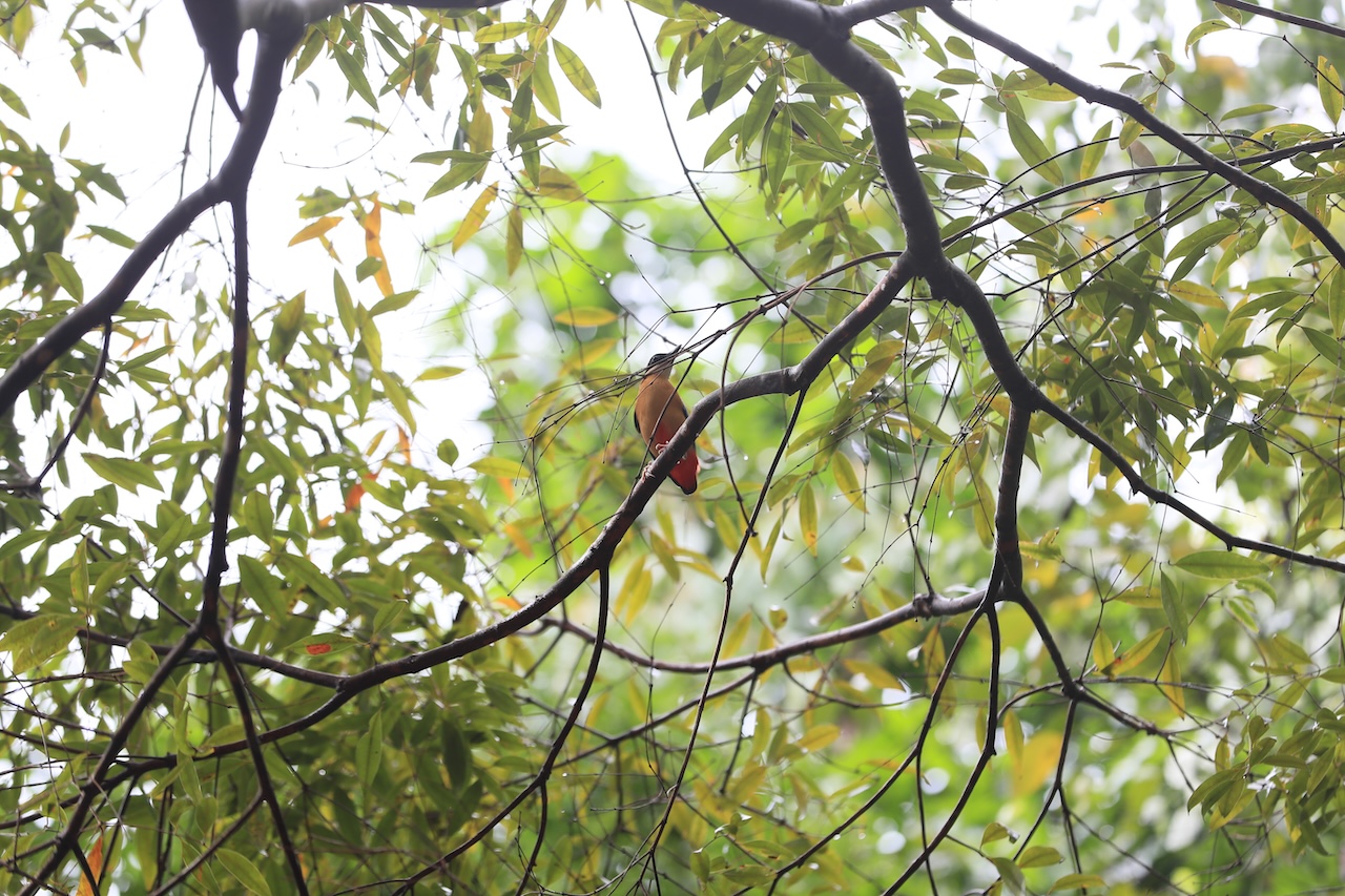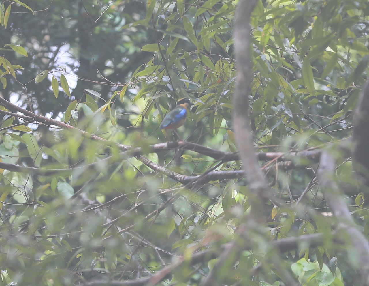看到一隻好看的藍鳥,但空氣濕度太大,鏡頭結霧,等到擦乾淨了,藍鳥已經跑了