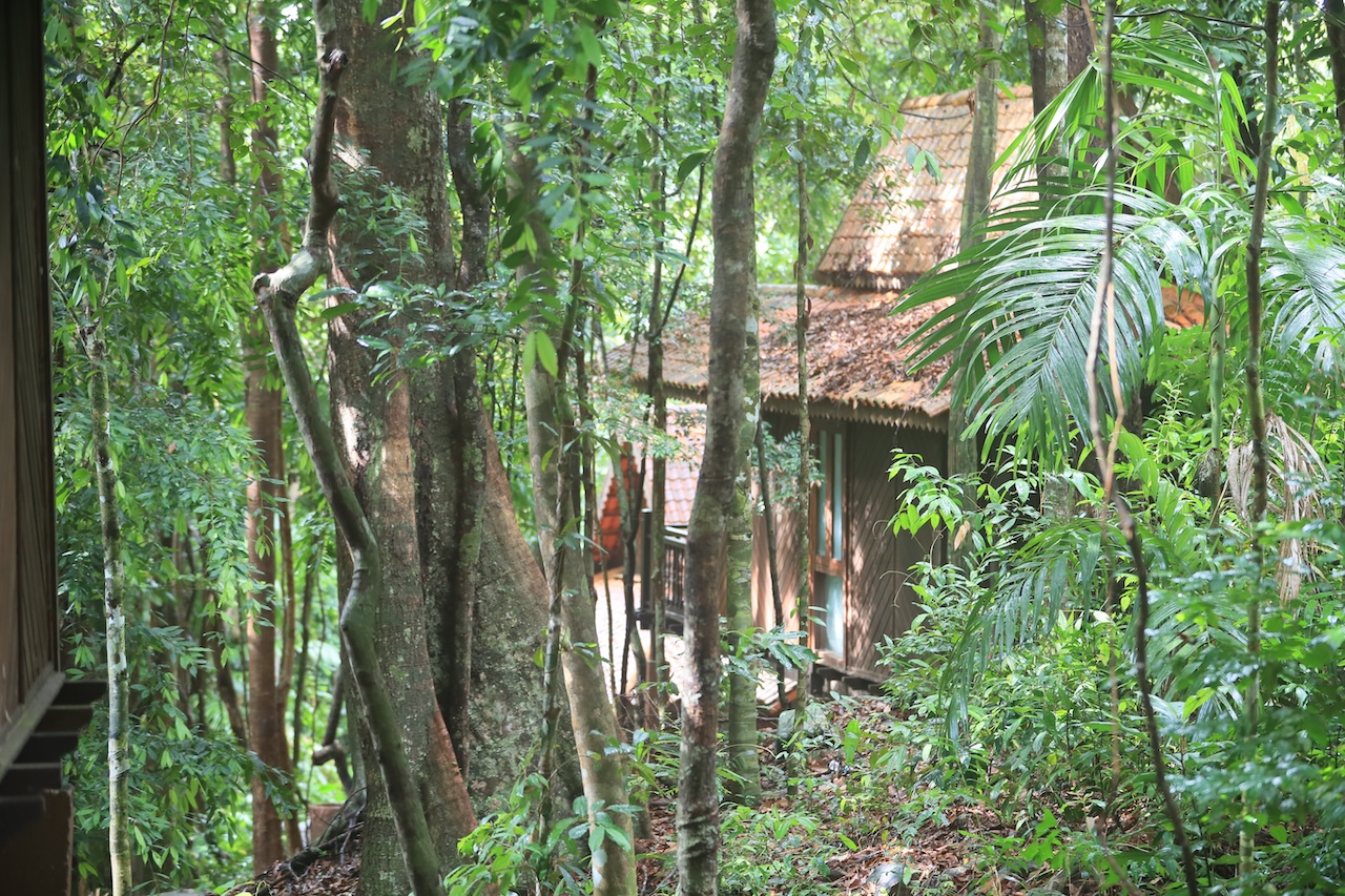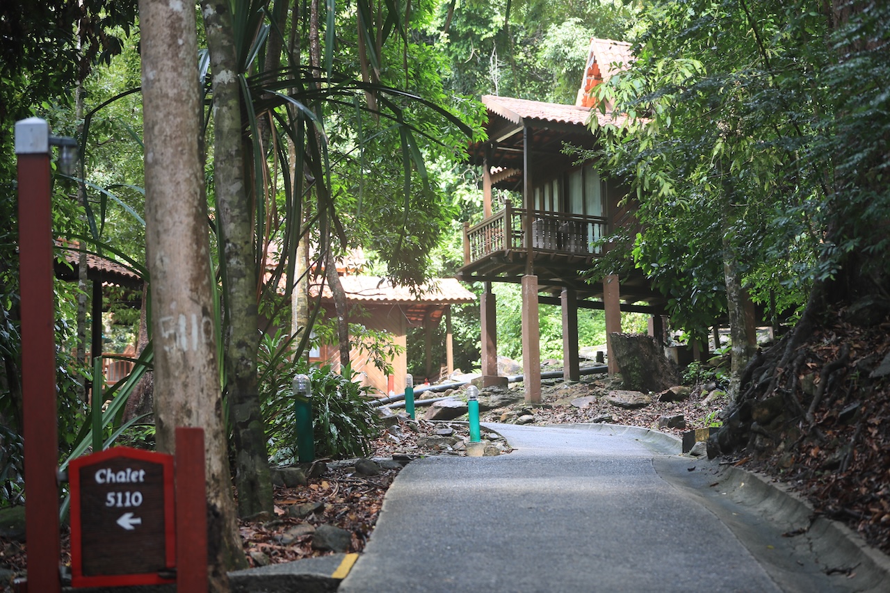 哇,這度假村真心不錯。有點偏遠,但我又不是到馬來西亞來逛街看人的,偏遠才好。海邊有一溜水上高腳屋,這個太奢侈了;第二排別墅在面海的山坡上;我要的是最靠裏的山坡別墅。貪便宜,本性難移,而且希望早上能在陽台上看到猴子。進出有一段路,不過有電動高爾夫車接送,還行。