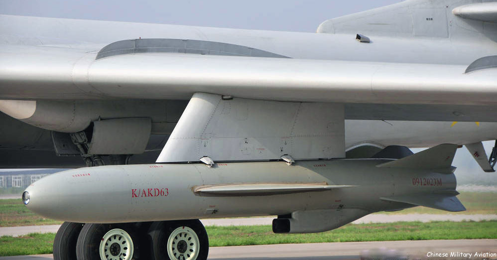 此外,國外博主“SomePILAOSINT”還提到了K/AKD-20遠程巡航導彈,該彈是基於東風陸基巡航導彈發展而來。彈長約7~8米、全重1.8噸左右,彈體為圓柱形,中部保留有一對摺疊彈翼,4片尾翼則呈十字形佈置。K/AKD-20導彈的動力裝置為一台小型渦扇發動機,導彈的最大射程超過2000千米,由轟-6K轟炸機攜帶,可對敵方高價值目標緻命一擊。