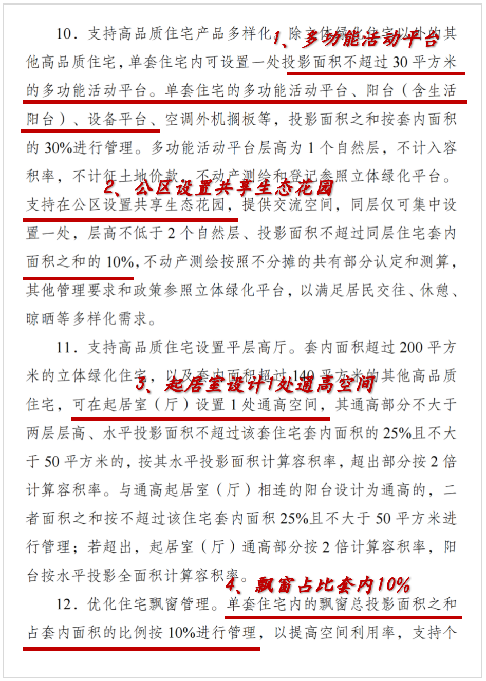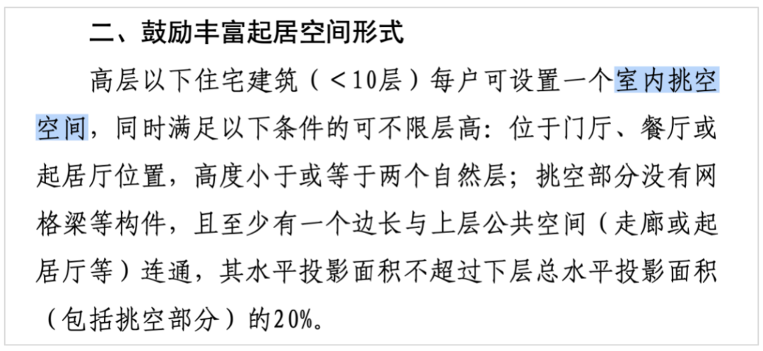 並且同樣鼓勵10層以下的住宅,每户可設置一個不超過套內20%的室內挑空空間