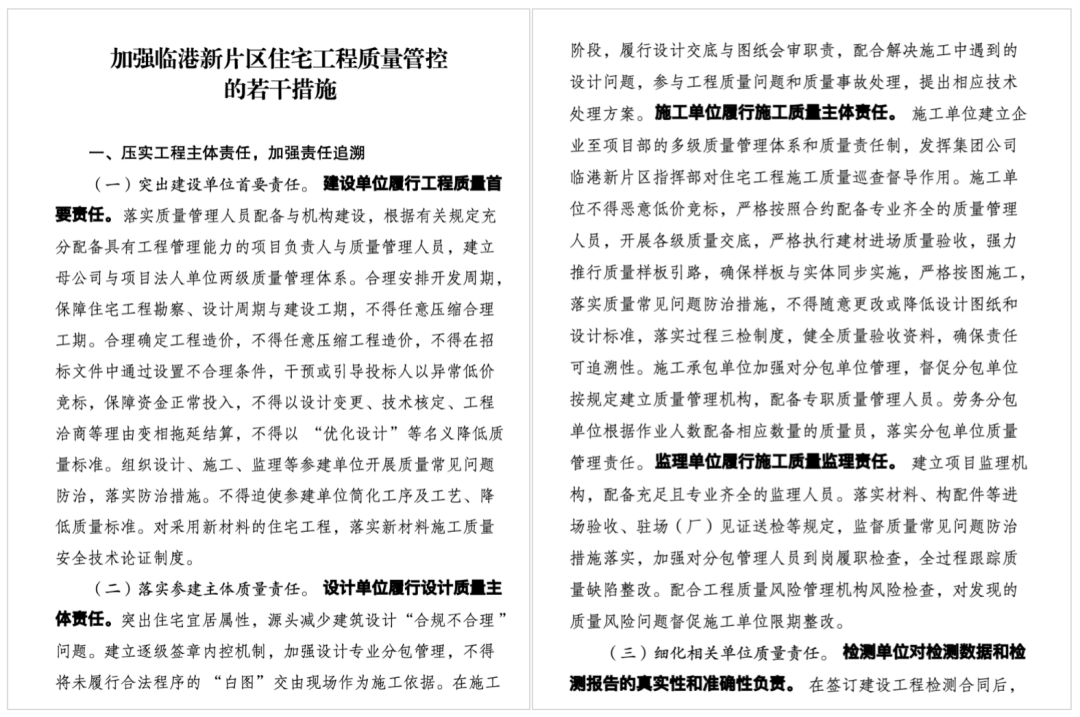 來源:《加強臨港新片區住宅工程質量管控的若干措施》