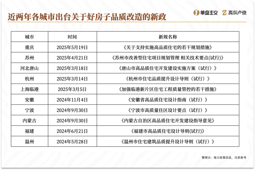 目的就是給大家梳理一下各城市關於好房子的標準和差異,如果説還有什麼更多的