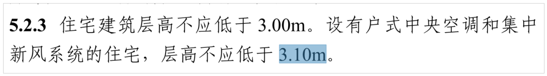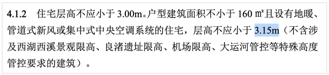 特意指出:設有户式中央空調和集中新風系統的住宅,福建層高不應低於3.10m,杭州不低於3.15m