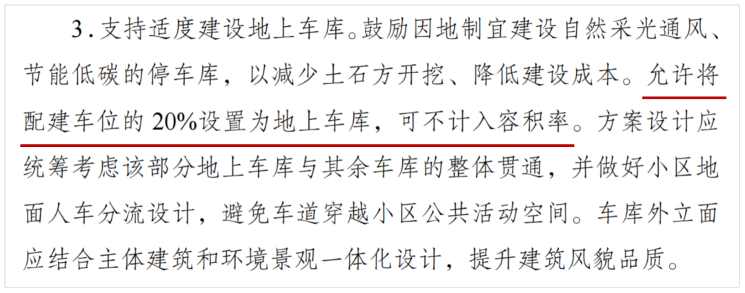 並且根據新規“用於滿足停車配建最低標準的停車空間(包括獨立設置的且專門用於停車的停車樓、居住用地內位於底層架空平台下方的停車空間、位於建築內部的多層停車空間)不納入容積率計算”