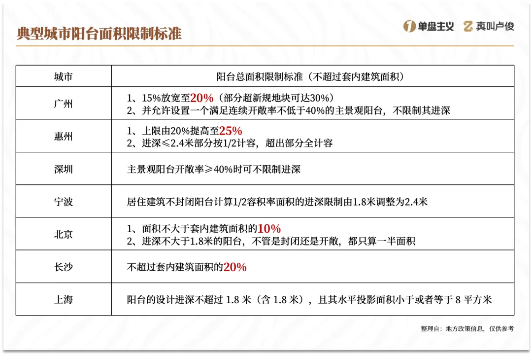 不久前我們統計過各城市陽台面積的擴大,比如廣州上限從15%擴大到20%,最高惠州提升至25%