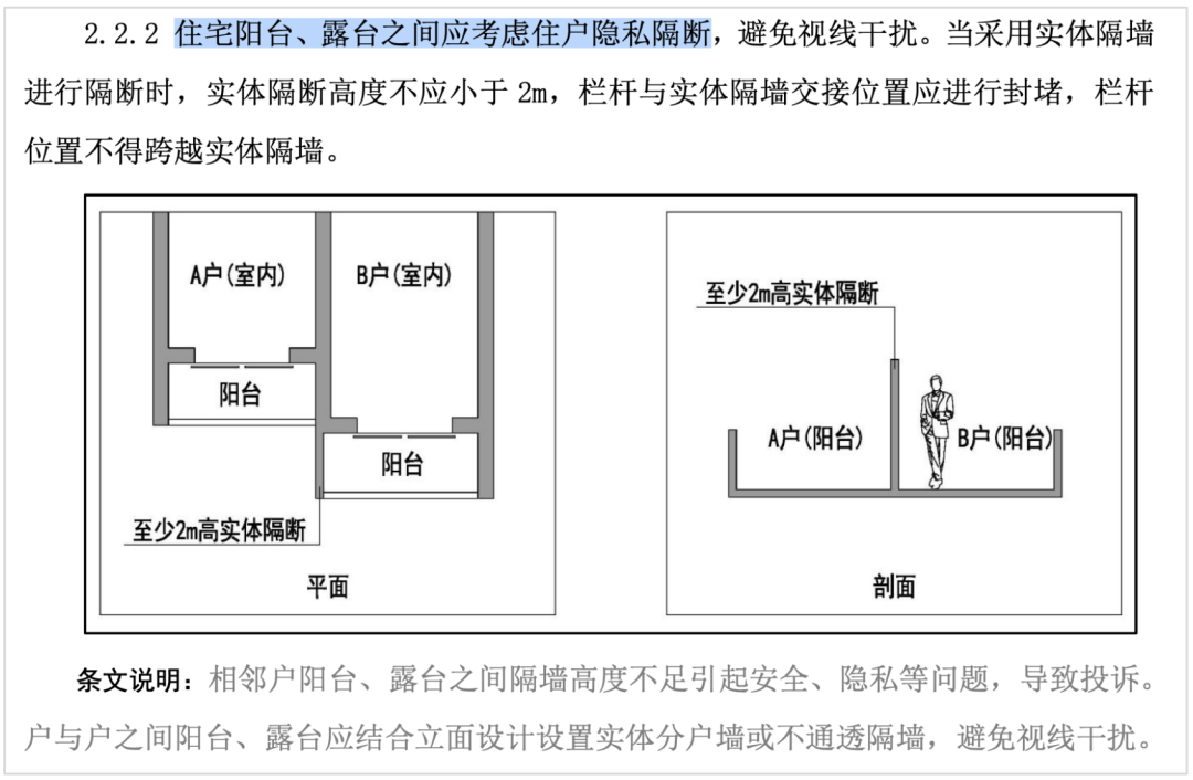 在2024年5月温州的《温州市住宅建築品質提升設計導則(試行)》中要求住宅陽台、露台之間應該考慮住户隱私設置隔斷