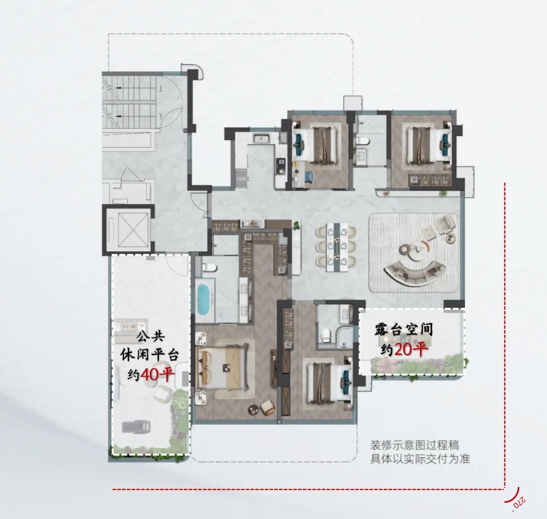 這也意味着一套套內250平的房子,現在露台贈送面積最高可達100平(視具體情況而定)