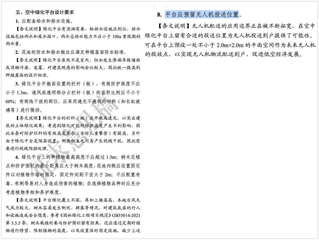 平台應預留一個不小於2.0m×2.0m的平面空間,作為未來無人機投送位置,以實現無人機物流配送到户