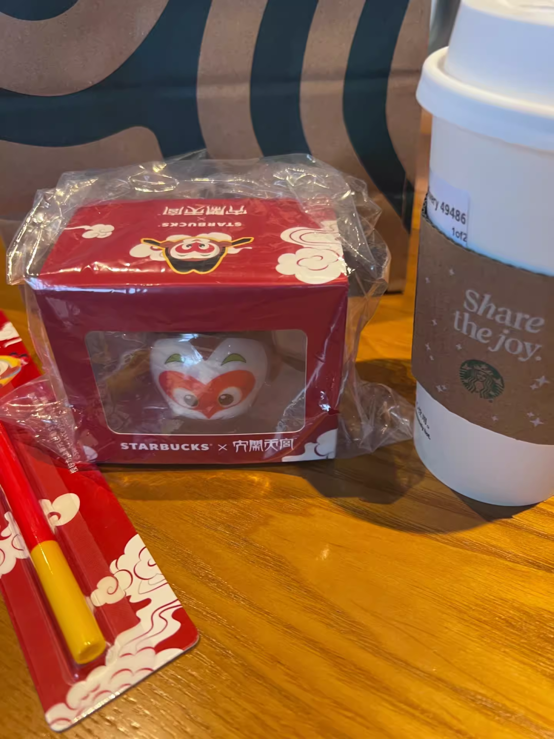 星巴克對流量的渴求也是寫在了門面上,2024年初,星巴克聯名《大鬧天宮》,推出了一系列國潮風格的飲品包裝盒產品。