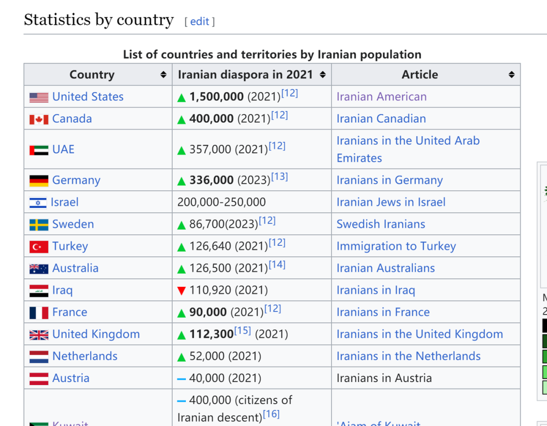 ▲海外伊朗人數量排名,第一美國,第二是加拿大