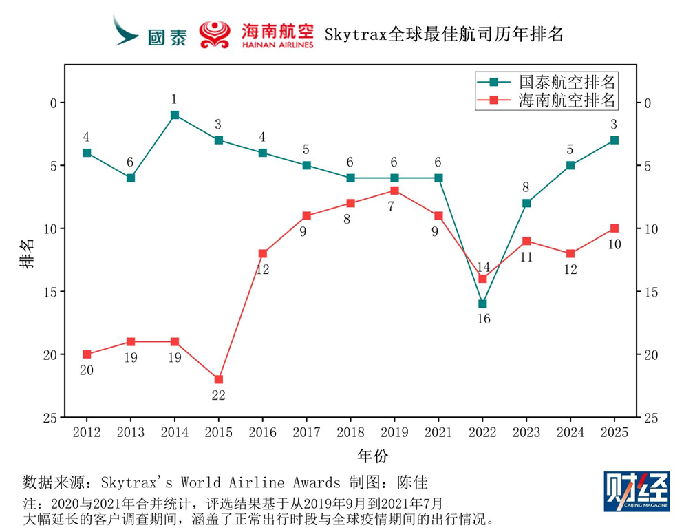 在這份年度榜單中,《財經》梳理出十大亮點,從全球排名的波動趨勢中觀察國際航空服務的變化脈絡:
